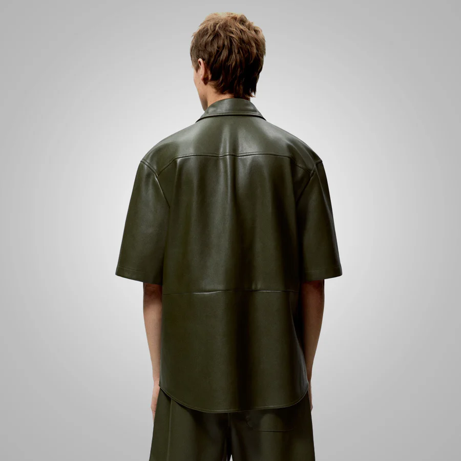 Men’s Dark Green Half Sleeves Leather Shirt