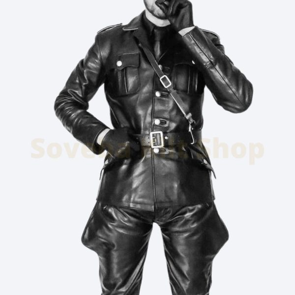 Men’s Dotted Pattern Full Sleeves Black Leather Shirt