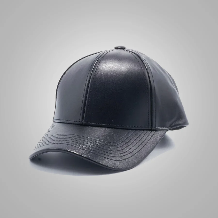New Men Handmade Black Sheepskin Leather Baseball Cap
